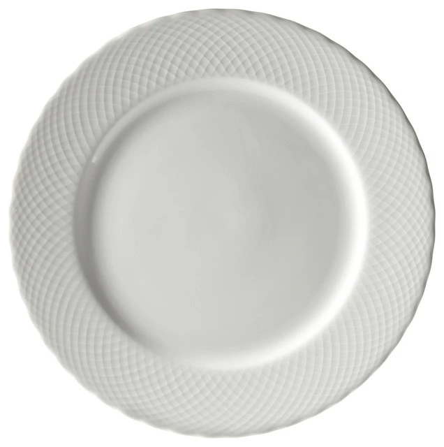 White Wicker : Rimmed with a fine wicker pattern that pulls guests attention toward the plated food in soft swooping lines, this dishware lends a subtle enhancement to your presentation.