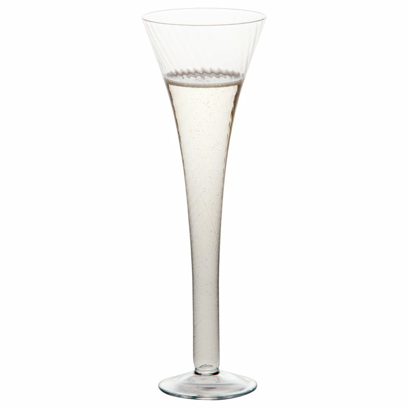 A celebratory flute in clear glass with a slight optic pattern blown into the glass. One of our most popular and elegant flutes.