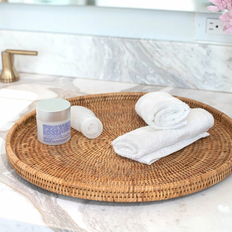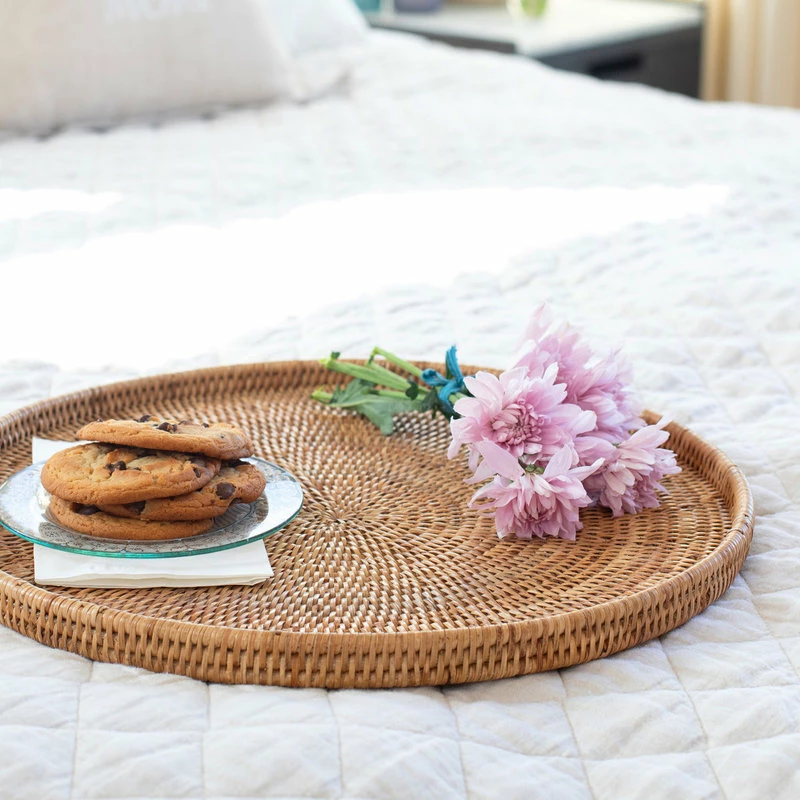 Our handwoven rattan Round Flat Trays offer a great way to both decorate and protect your table.