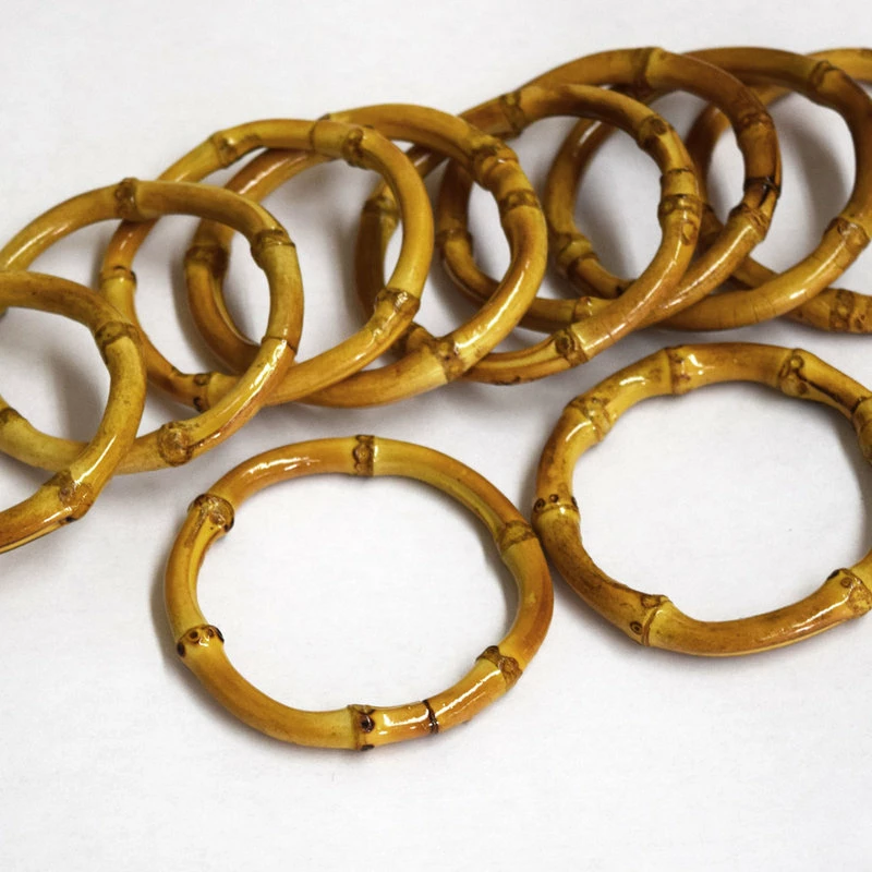 Made from eco-friendly bamboo, these napkin rings are actually the roots of the bamboo. When a bamboo tree falls over, the roots of the bamboo are exposed. The roots are heated to bend into the round shape. Perfect addition for any table top for an tropical theme. Inside diameter measures just about 2″.