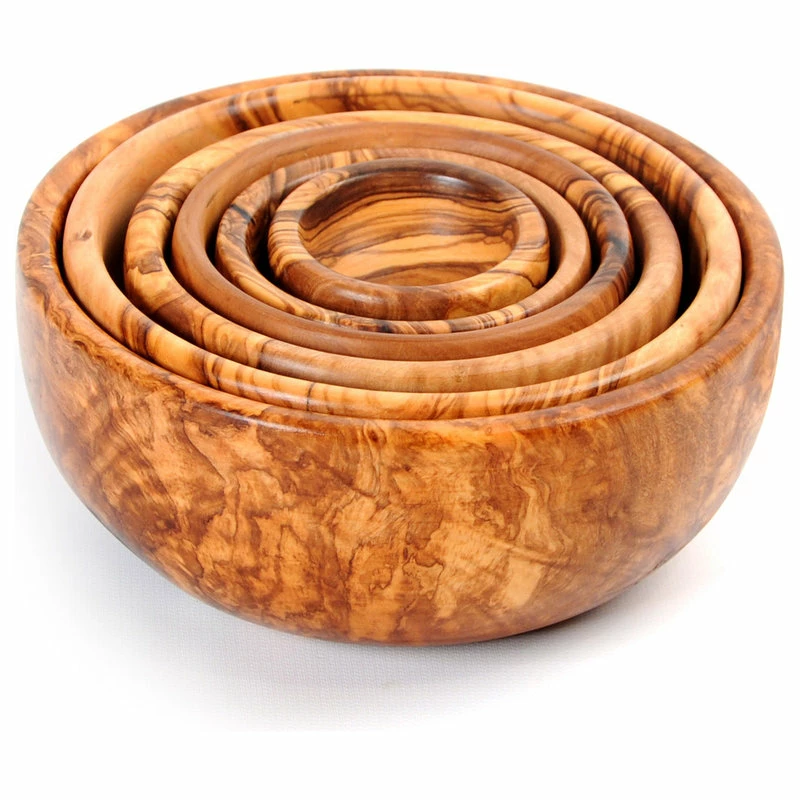 Handmade Olive Wood Nesting Bowls/Wooden Serving Salad Bowls Set of 6- Handcrafted Snack Bowl