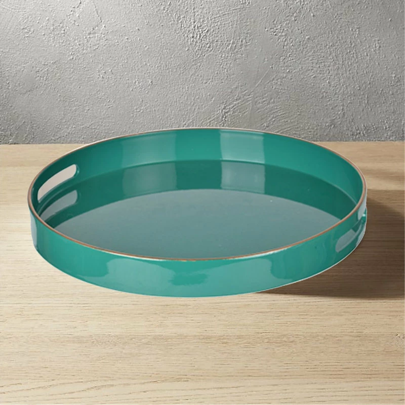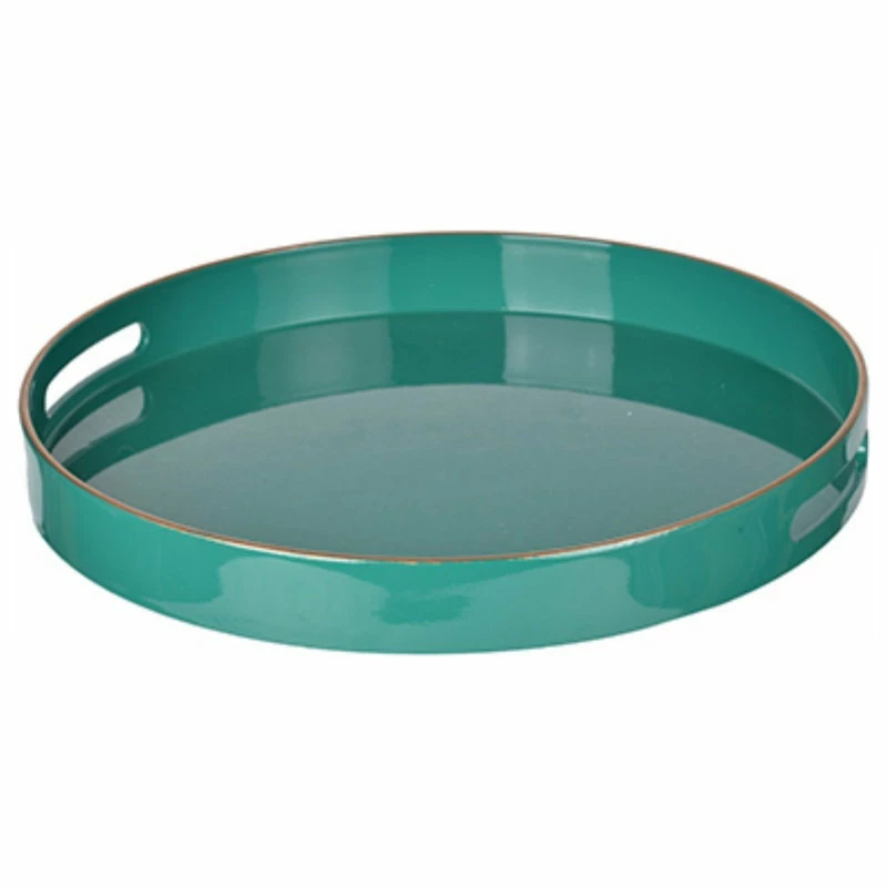 Mimosa Round Tray With Cutout Handles, GreenSimple and elegant tray with cutout handles, eliminating all unwanted and unnecessary features and designs, this tray with its very simple and minimal artifacts is awesomely beautiful!! Crafted in round shape the turquoise color is very soothing and beautiful. Its immaculate finish is praiseworthy.
