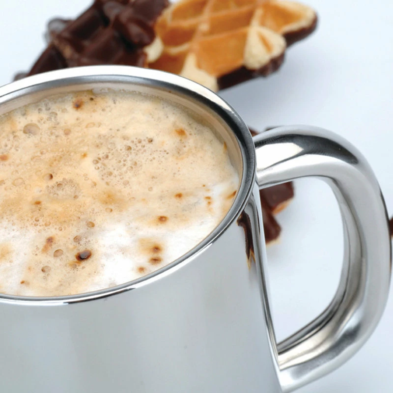 Set Includes: 2 – Stainless Steel Coffee mugs. Take your favorite coffee beverage hot or cold anywhere you want to go. The Double walled stainless steel construction with stay cool handles. Coffee mug is made with 18/10 stainless steel with a mirror finish. Holds up to 0.4Qt.