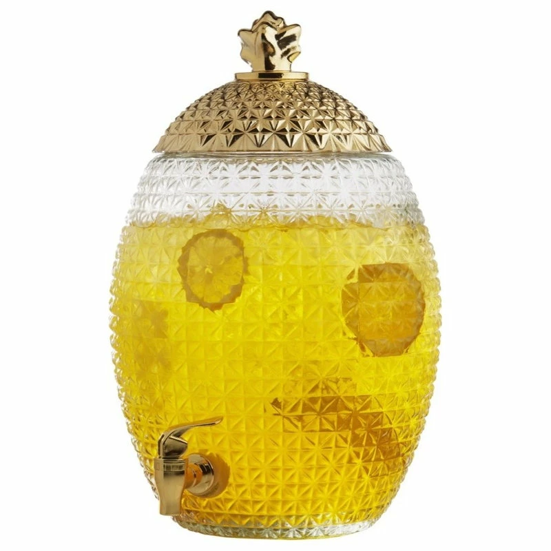 Impress your guests with this pineapple shaped drink dispenser that will bring a tropical look to your table setting. You will have your guests milling around this large glass drink dispenser, refreshing themselves effortlessly with a cold drink. It is not only impressive but also a functional asset to the buffet or table setting.