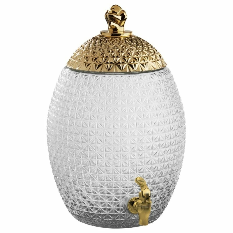 It features a removable gold painted glass top and a cooper BPA free plastic spigot β perfect for providing a bug-free, hands-free and germs free solution