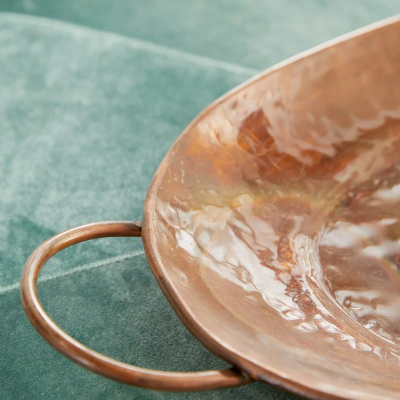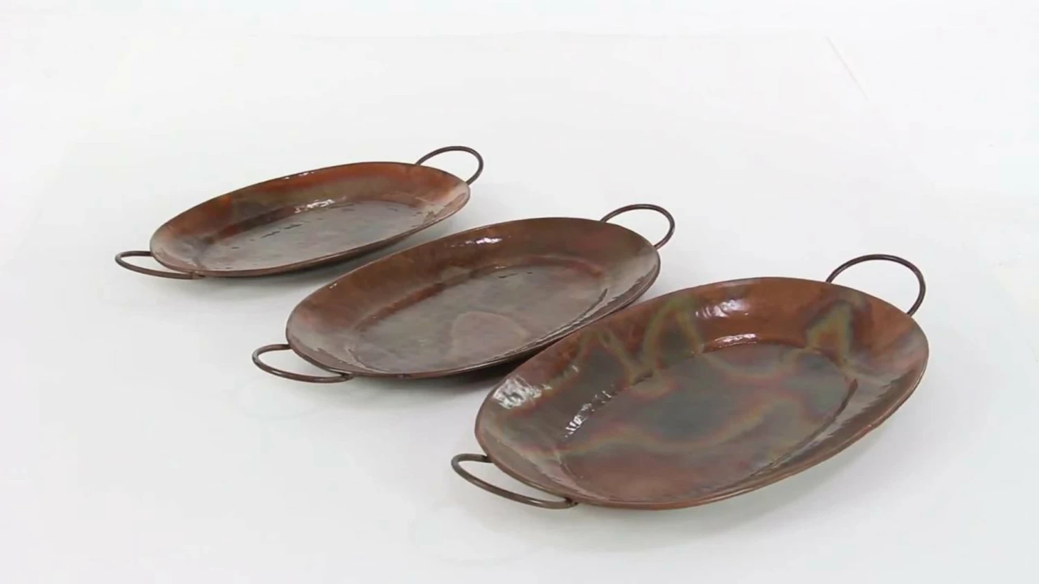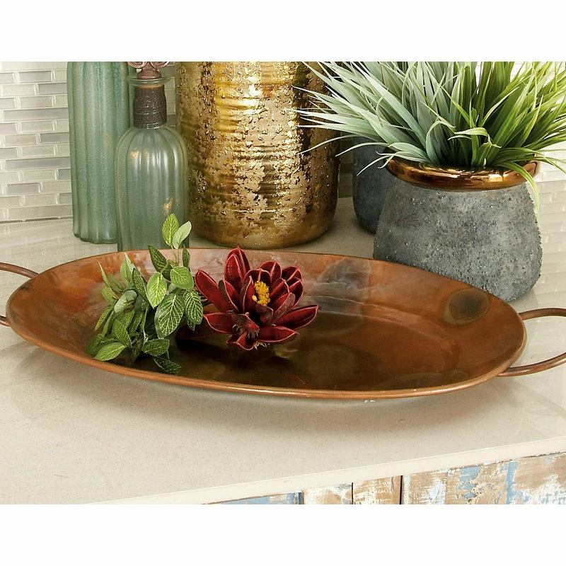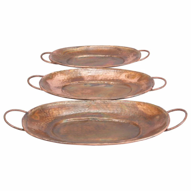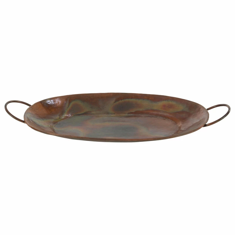 SKU: 32924 Categories: Serveware, Serving Trays, Tabletop Tags: Copper trays, Decorative trays, Iridescent trays, Large copper trays, Large metal trays, Large oval trays, Metal trays, Metal trays with handles, Oval, Oval copper trays, Oval metal trays, Oval serving tray, Oval Trays, Rustic decor, Rustic trays, Serving trays, Set of trays, Tabletop decor, Trays, Trays with Handles