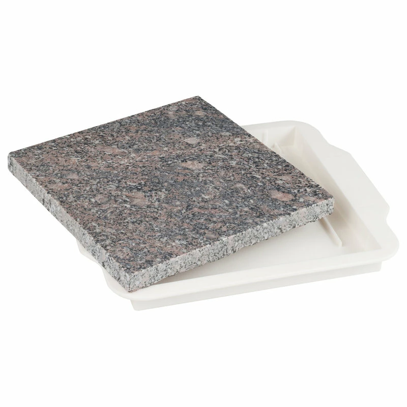 Keep your food hot with the Warming Plate from Chef Buddy. Simply place the plate in your microwave for a few minutes. The center of the stone becomes hot while the handles stay cool to touch. The granite core transfers heat to the dish. Removable granite insert for easy cleaning. Can be used indoors or outdoors, no cords or batteries are required. Made of white plastic with granite insert that measures 7.75 inches x 7.75 inches.
