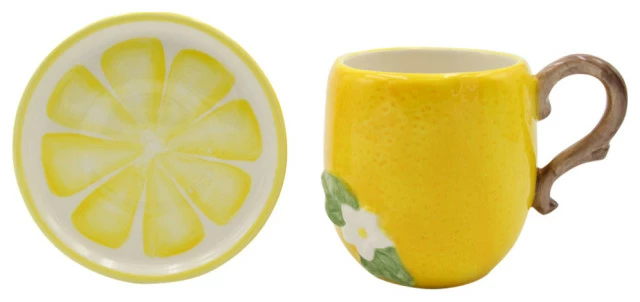 - Ceramic Lemon Hill Cup and Saucer Set of 2.
