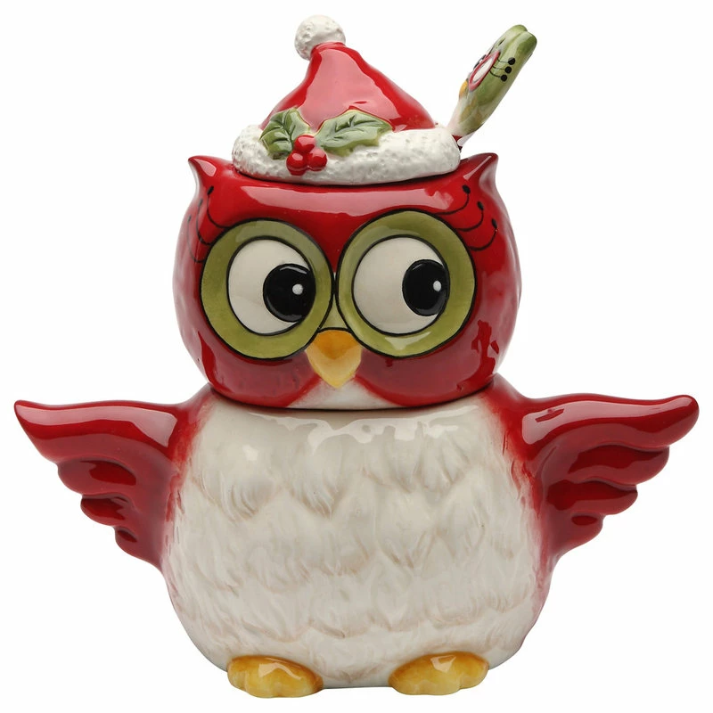The Owl Sugar and Creamer Set is a fun, easy way to doctor your morning coffee or tea. Made from hand-painted red and white ceramic, this sugar and creamer set by Laurie Furnell is festive and unique. Includes a small spoon.