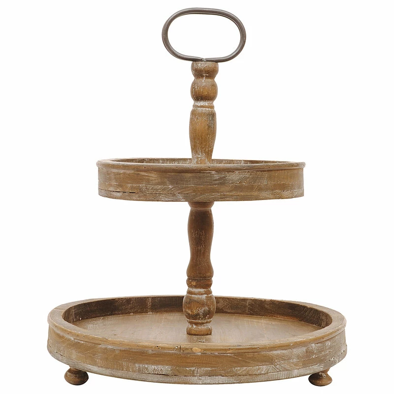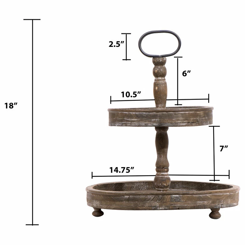 Add a fresh touch of decor to the kitchen with this amazing 2-tier tray. Both trays allow ample space for displaying items. Fill it with spices and easily move to the area of the kitchen they are needed. It will also make a perfect centerpiece for the table. Place a colorful placemat under it and fill the bottom tray with decorative greenery over a row of battery operated lights. Fill the top tray with salt, pepper, sugar and creamer.