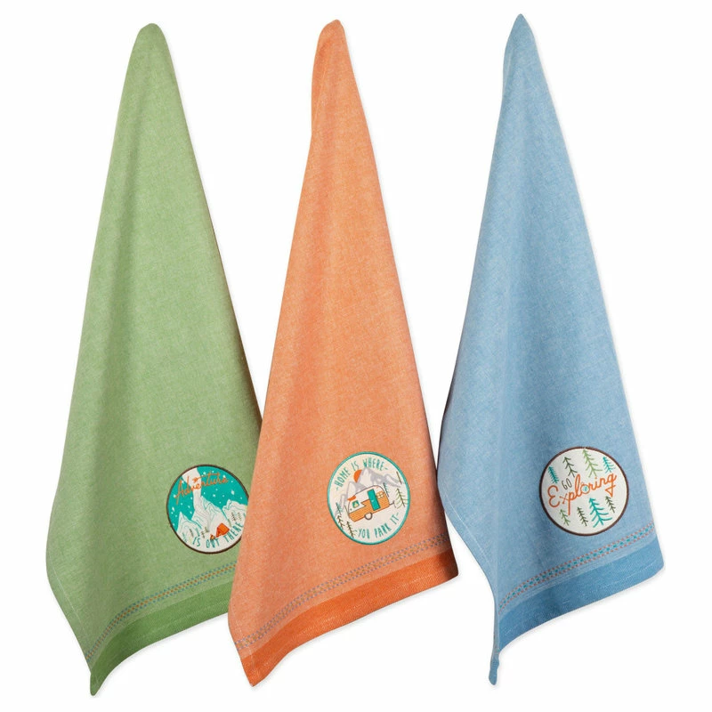 DII Assorted Go Exploring Dishtowel (Set of 3)Each set includes 3 dishtowels measures 18×28″ to tackle all of your drying and cleaning kitchen tasks. Cotton Fabric, Machine Washable. Wash with Cold Water in Gentle Cycle & Tumble Dry Low. Do not bleach them or run them through a hot dryer The festive design coordinate with most kitchen decor to add holiday joyfulness to your kitchen This easy care dishtowels come with multiple colors, perfect Mother’s Day, holidays, housewarming and hostess gifts. DII offers delightful Home and Kitchen products, for more options search “DII for the Home”.