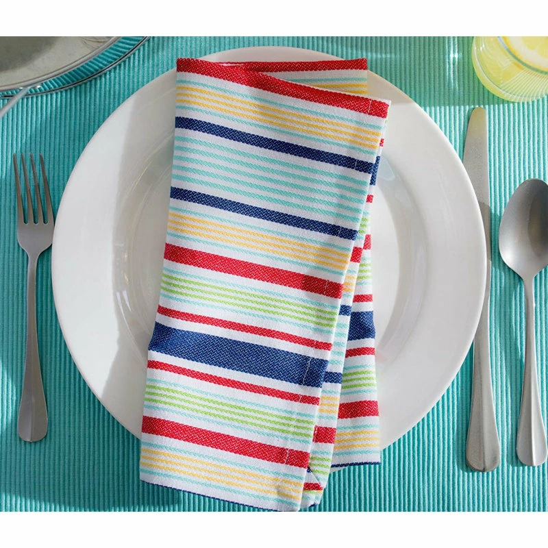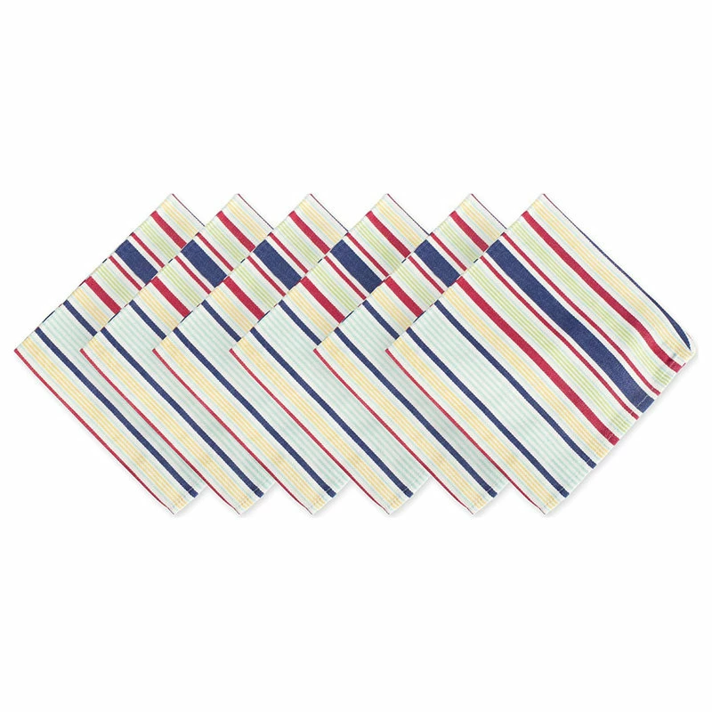 DII Basic Primary Saturated Stripe Napkin (Set of 6)To maintain napkin quality, nothing has been added to the cotton. Therefore, the all-natural fibers will shrink upon the first washing. In order to minimize the shrinkage, do not dry the napkins on high heat and do not dry fully. Medium heat is best. Remove just prior to being completely dry. Can be dressed up or down to create the perfect look for each place setting and your table, add a napkin ring, placemat, tablecloth Perfect for everyday use, holidays, catering, special occasions, dinners, brunches, potlucks, BBQs, buffets, showers and more Other coordinating DII tabletop and kitchen items sold separately To view the full range of our products for Home and Kitchen visit our brand page by clicking the link above. To locate the matching napkin ring in the photo search: DII Napkin Ring Set.