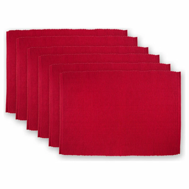 DII Cardinal Red Ribbed Placemat (Set of 6)Rectangular placemats measure 13×19″ made of 100% five ply cotton they are a staple for every kitchen. Have a mess? These are easy to care for, simply throw in the wash to clean and lay flat to dry. With a large variety of color options these can be mixed and matched and swapped out depending on the season. Entertain guests and serve a big meal with all the fixings on our placemats year after year! These solid ribbed mats are a great basic to dress up into a formal meal or for something casual. Easily adds texture and interest to any table. DII offers delightful home products including themed cloth napkins, napkin rings, table runners, and tablecloths. Click the DII link at the top of the page to explore our collections or search “DII Table Tops”.