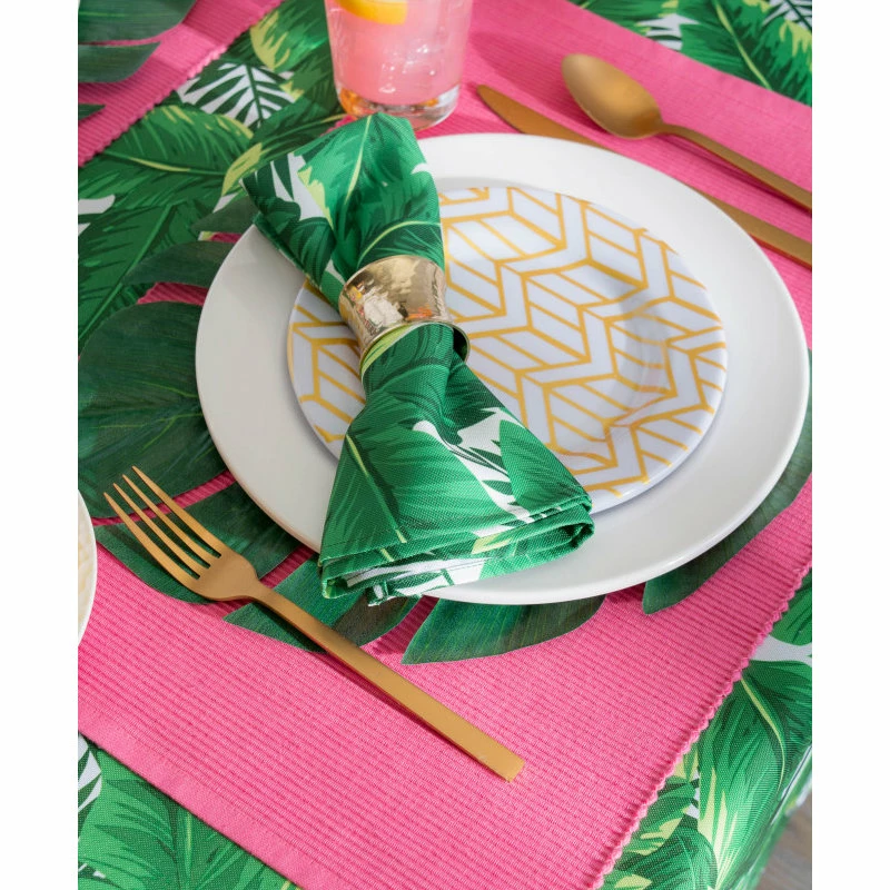 DII Flamingo Ribbed Placemat (Set of 6)Rectangular placemats measure 13×19″ made of 100% five ply cotton they are a staple for every kitchen. Have a mess? These are easy to care for, simply throw in the wash to clean and lay flat to dry. With a large variety of color options these can be mixed and matched and swapped out depending on the season. Entertain guests and serve a big meal with all the fixings on our placemats year after year! These solid ribbed mats are a great basic to dress up into a formal meal or for something casual. Easily adds texture and interest to any table. DII offers delightful home products including themed cloth napkins, napkin rings, table runners, and tablecloths. Click the DII link at the top of the page to explore our collections or search “DII Table Tops”.