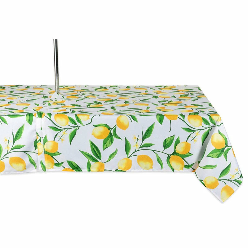 DII Lemon Bliss Print Outdoor Tablecloth With ZipperOur 100% polyester tablecloth measures 60×84″, is machine washable, spill proof, and stain resistant. Fits tables that seat 6-8 people. 100% polyester, machine washable, gentle cycle, tumble dry low. Low iron if needed. Whether you’re throwing an outdoor event or BBQ or having an intimate family gathering on a cool Summer night, this table linen will protect your table top from scratches and spills. Instantly brighten dining tables while protecting surfaces. Tablecloths are spill and stain resistant, perfect for indoor or outdoor use in the spring and summer months. DII offers delightful home & kitchen products including matching table runners and tablecloths. Search “DII For the Home” to explore our other collections or search “DII Tabletop”.