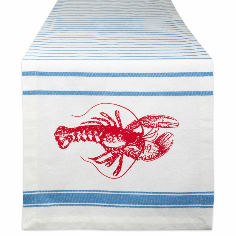 DII Lobster Stripe Table RunnerMeasures 14×72″, appropriate for a table that can seat 4-6 people. Coordinate with matching placemats and table runners to create the perfect place setting. Fringe welcomes rustic charm and texture to your tabletop while heavyweight cotton stays put to protect from scratches and spills. Place lengthwise onto console tables, dining tables or entryway tables to instantly update up any room. DII offers delightful Kitchen Linens including dishtowels, dish cloths, aprons, potholders and oven mitts, but for more options search – DII Dish Cloths to explore our other collection.