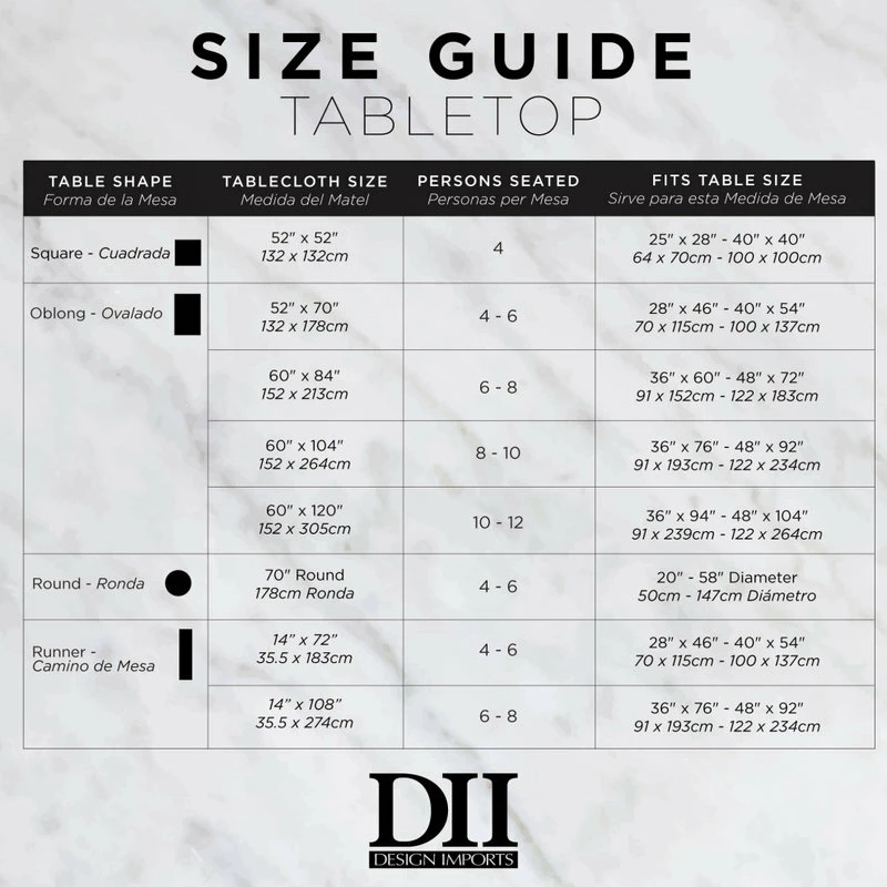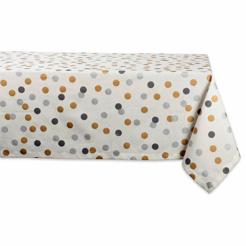 DII Metallic Confetti TableclothThis square tablecloth is 52×52″ in size, appropriate for a table that can seat 4 people Woven of 100% cotton yarn, to launder machine wash cold, dry on low heat, remove just before tablecloth is completely dry and lay flat on table to minimize wrinkles Metallic printed polka dots on a white background is an chic and contemporary way to add joyful glamour to your home. This modern Christmas pattern is sure to add a fun festive touch to your table. Use all through the holidays, at your special occasion, or give as a gift. DII offers delightful home products including themed cloth napkins & rings, placemats, and table runners. Search “DII Table Tops” to explore our collections.