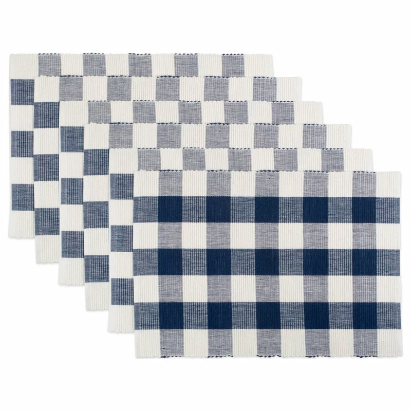 DII Navy Buffalo Check Ribbed Placemat (Set of 6)Rectangular placemats measure 13×19″ 100% cotton. Machine wash in cold water separately, gentle cycle, tumble dry low. Low iron if needed. Cotton may shrink. Marry our rustic placemats with the rest of your table setting to dress up your dining experience or use alone for casual everyday entertaining. Mix natural texture and rustic charm into the rest of your home by placing lush potted plants atop our placemats in the foyer or on entryway tables for a warm and earthly welcome! DII offers delightful home products including themed cloth napkins & rings, table runners and tablecloths. Search “DII For the Home” to explore our other collections or search “DII Table Tops”.