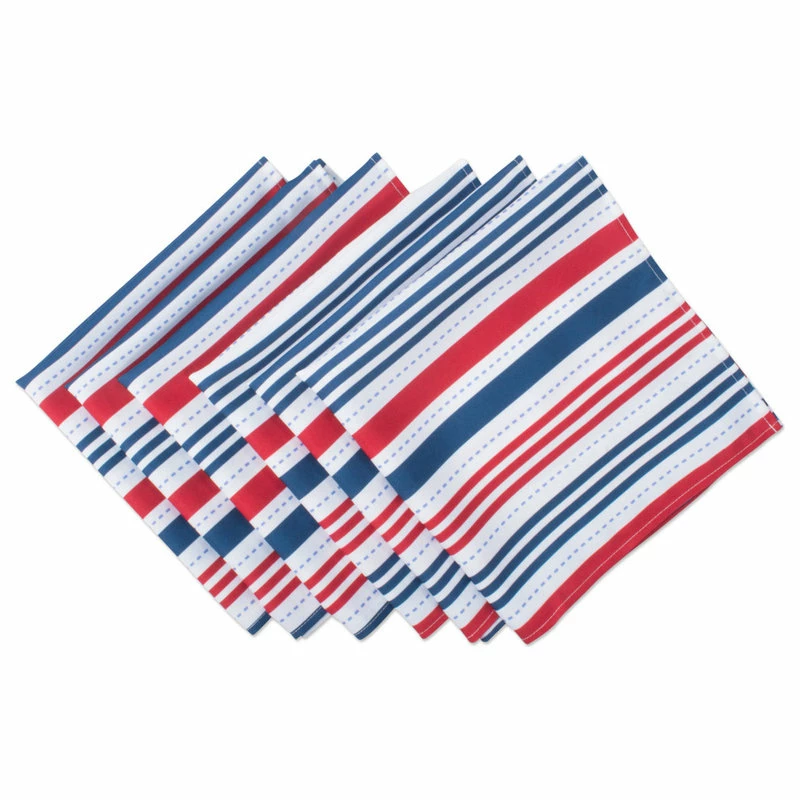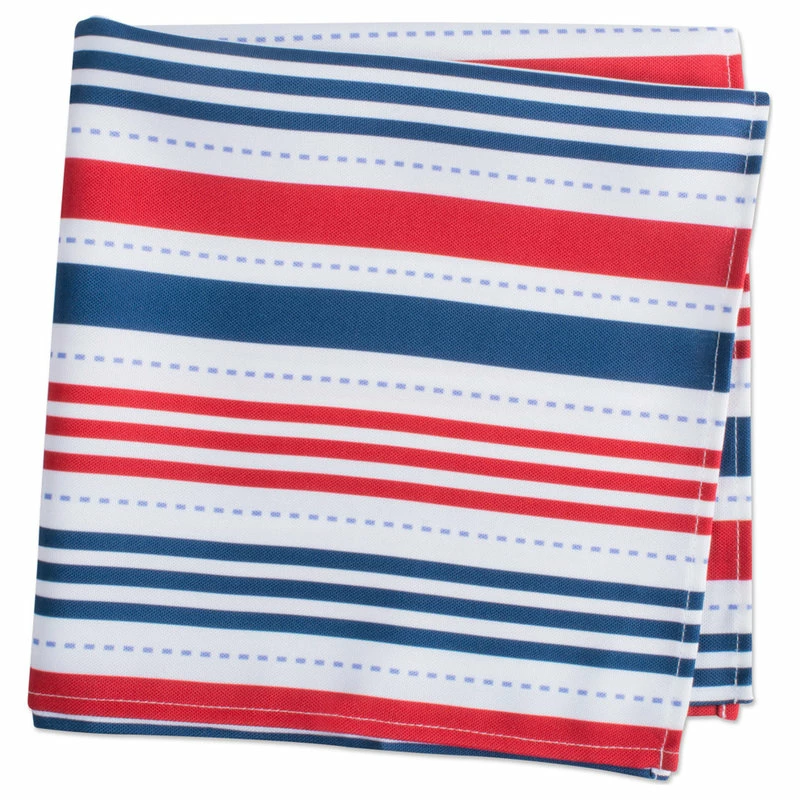 DII Patriotic Stripe Outdoor Napkin (Set of 6)Oversized napkins measure 20×20 in a set of 6, made of 100% polyester this is a water and stain resistant linen for indoor or outdoor use. 100% polyester, machine washable, gentle cycle, tumble dry low. Low iron if needed. Fashioned in timeless floral designs, this outdoor napkin features vibrant rich colors and mitered edges to add style and function for your meal. A classic staple for any kind of entertaining or everyday use. Reduce paper waste by switching to our durable cloth napkins, washable and reusable while adding a finished look to your tabletop! DII offers delightful home products including matching tablerunners and tablecloths. Click the DII link at the top of the page to explore our collections or search “DII Table Top”.