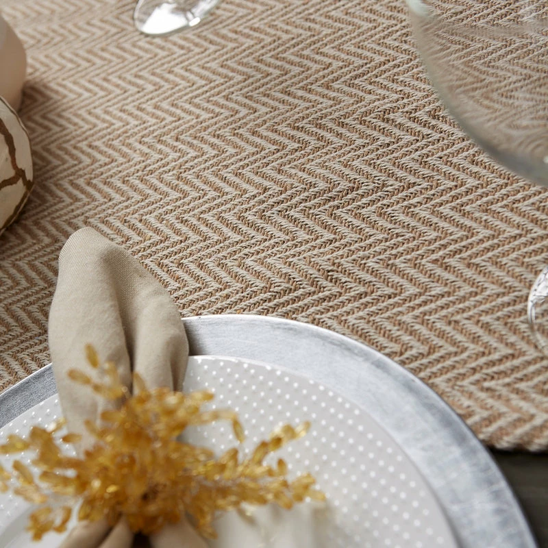 DII Stone Chevron Handloom Table Runner15x72″ Fits table that seat 4-6 people Cotton. Machine washable. To minimize the shrinkage, tumble dry low, remove just prior to being completely dry. Like a favorite knit sweater, the runner has lots of texture and full of detail. Fringed edges have a casual look that works with any style of dishes. Perfect for everyday use, holidays, catering, special occasions, dinners, brunches, family gathering, and more. Also great for entry way tables, coffee tables, dining tables, or other surfaces of your home.