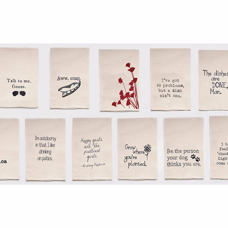 Our new flour sack tea towels are here! Add a little personality to your kitchen with these cute and quirky towels! They also make a great hostess gift!