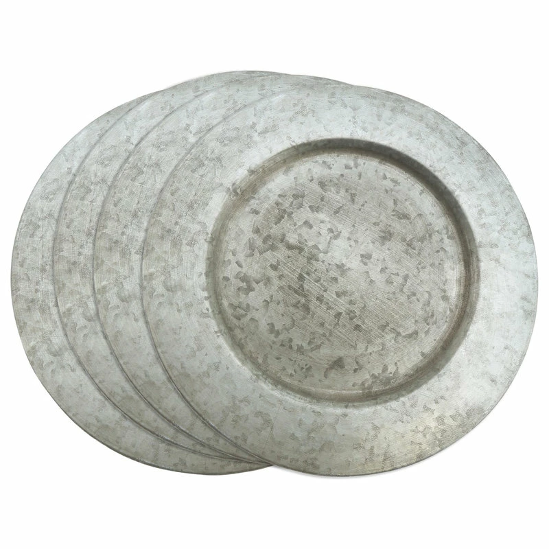 - With a galvanized metal finish, our rustic round metal charger plate gives every dish that down-home farmhouse feel