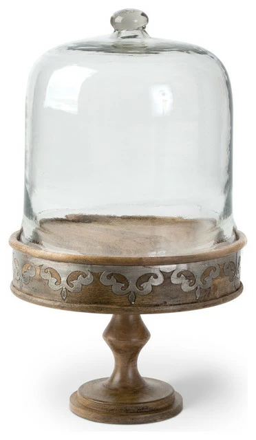 With this lovely GG Collection Cake Pedestal with Dome and Plate You can have your cake and eat it and gaze at it, too. This elegant wood pedestal piece features a wood and metal inlay pedestal and glass dome top.