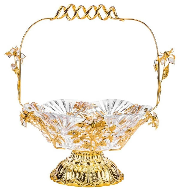This basket will add a touch of elegance to any holiday table. Fill it with coffee cups, cupcakes, candies, flowers or fruits. This dish can also stand alone as a decorative piece.