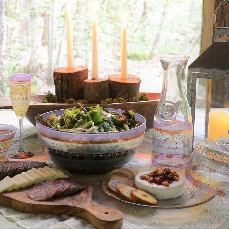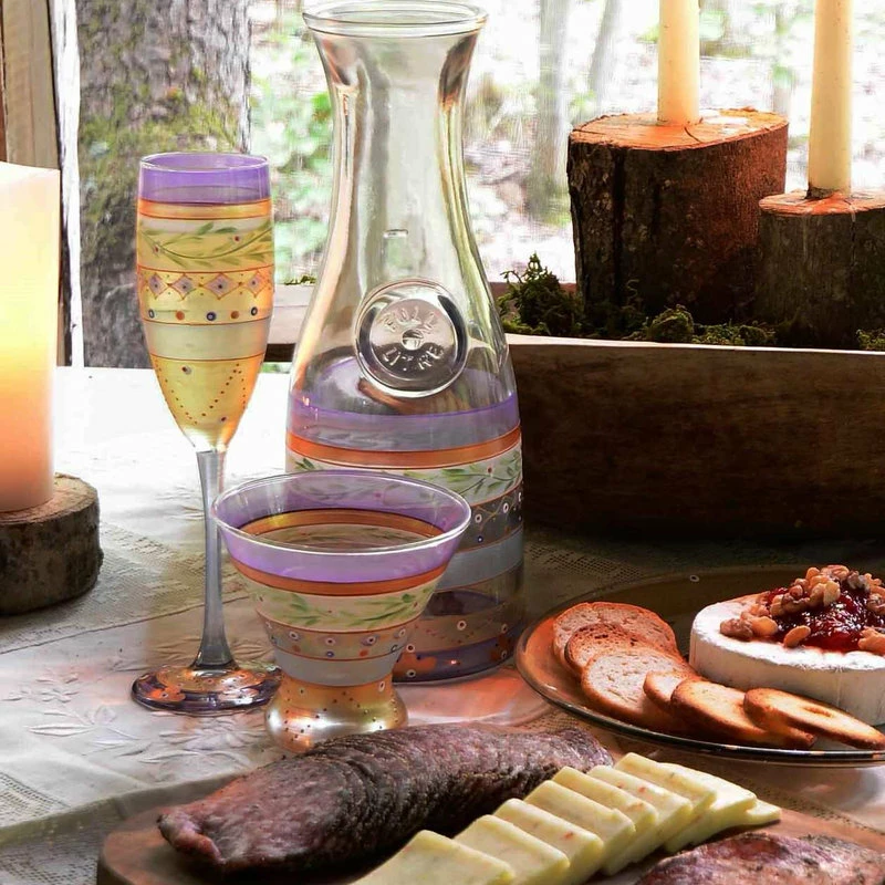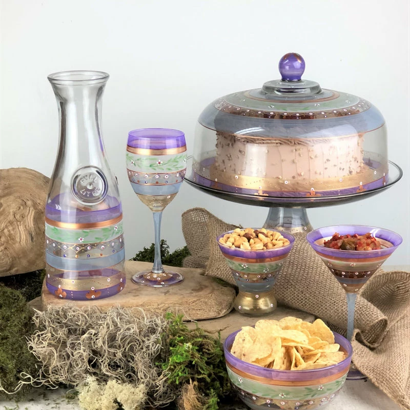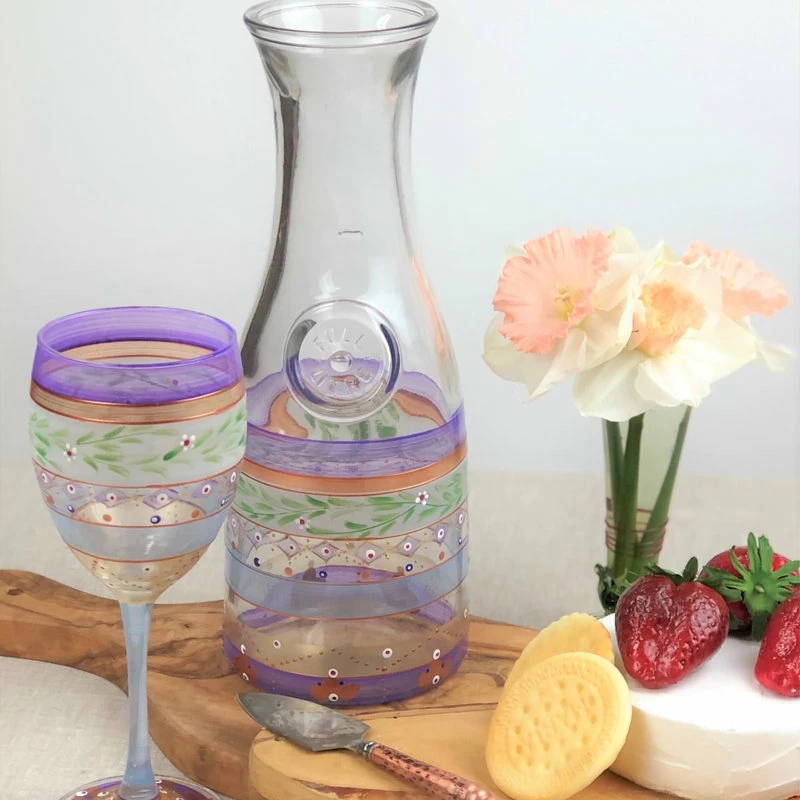 SKU: WC996006 Categories: Carafes, Serveware, Tabletop Tags: Carafe, Colorful, Gold, Hand painted, Hand painted carafe, Lavendar, Mosaic, Mosaic garland, Purple