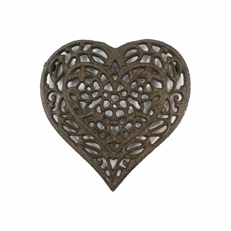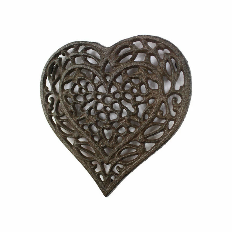 This Cast Iron Heart Shaped Trivet 7” is a fun heart shaped trivet that brings love to any kitchen setting. Handcrafted by our master artisans, this trivet is the ideal piece to add a romatic feel to any kitchen.Available in different styles. Handcrafted from cast iron Excellent heart decoration Will lie perfect on flat surfaces