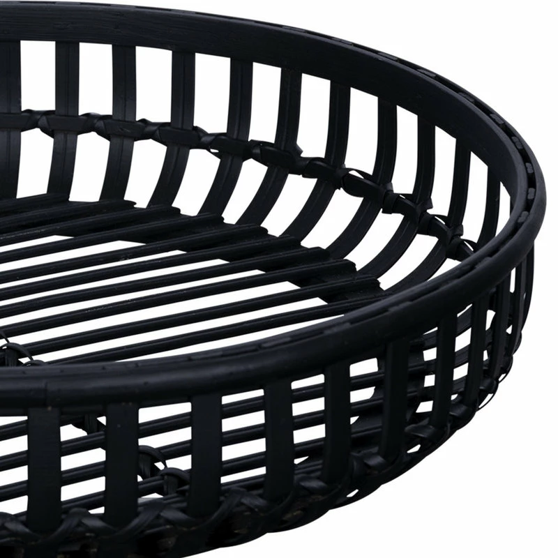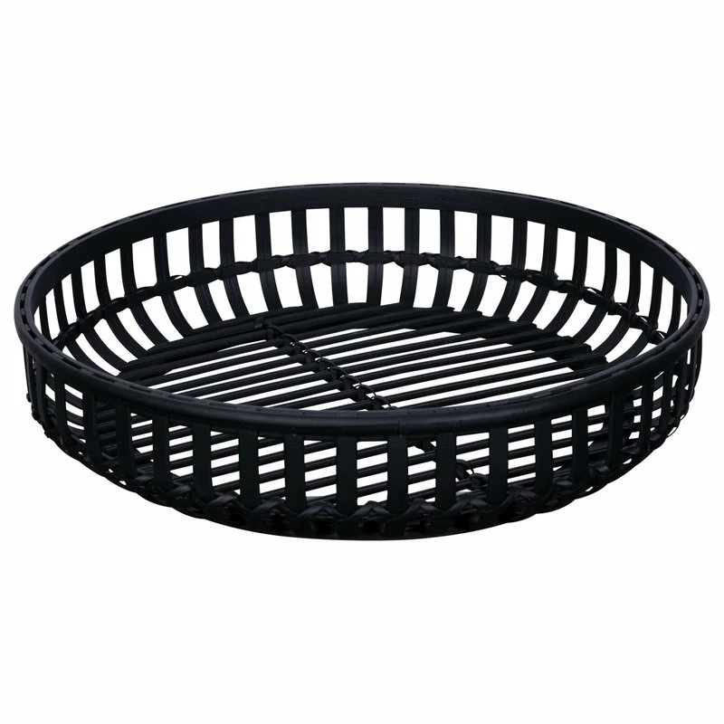 Add the perfect touch of rustic decor to your home with this Black Round Rattan Decorative Tray. This tray is made from a mix of rattan, bamboo, and wood. The color of the serving tray is a matte black and the design is inspired by basket weave patterns. This basket is a great way to decoratively and fashionably control clutter. You can use it as decor around you home to display or to store different items. This rustic decorative tray will not only look great in your own home but will be great as a gift for your friends and family. 3.25″ H x 14″ W x 14.25″ D
