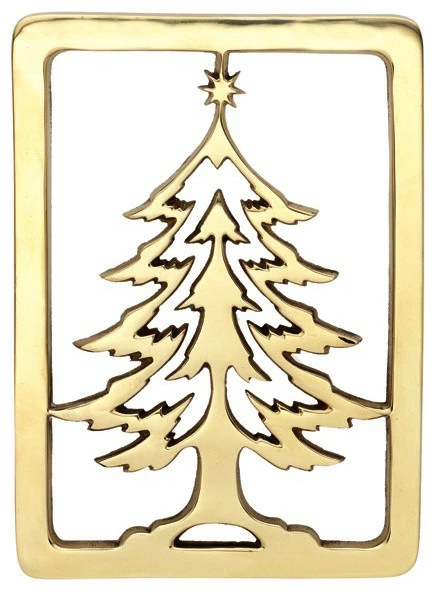 A classic holiday tradition is decorating the Christmas tree. Our Christmas tree trivet is a splendid rendition of a majestic tree as it once stood in the forest, waiting to be adorned with ornaments and treasures of Christmas time. Because of the handcrafted workmanship of each piece, you may occasionally be able to discern very small inclusions, imperfections, and even slight size variations. This is to be expected, and we ask that you understand that they are an inherent part of the manufacturing process. Our products, we believe, are the best that can be made today. All products are solid brass. If you receive one that has a slight discoloration, it is not a defect. It has travelled over 8,000 miles from the factory to our warehouse. Use a metal polish, such as Brasso or Wenol, to correct the discoloration. The discoloration is not a defect.