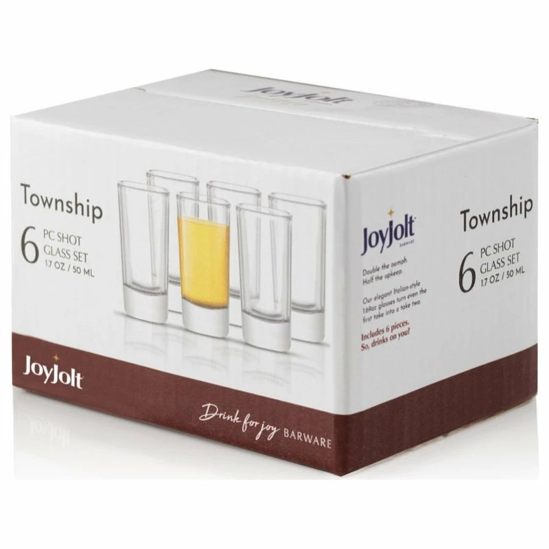The Township shot glasses JoyJolt’s, expertly designed, timelessly unique shot glass. With an elegant and luxuriously chic design. The shot glass are easily recognized by their heavy set bases and asymmetrical design made with top quality materials. The shot glass is in a class of its own and will inevitably raise the standard of any occasion they are added to. Holds up to 1.7 ounces of your favorite whiskey. They are ideal for casual entertainment and are durable enough for everyday use. Your JoyJolt Township shot glasses arrive as a set of 6 and holds (1.7 oz.) each. They are securely packed in a beautiful gift box and are the perfect gift for yourself or anyone who enjoys fine drinkware. Our Township shot glass set comes with a pack of 6 top quality clear shot glasses. these glasses have a unique base and design that ensures stability and an innovatively bold style. The shot glasses are hand made with cutting edge materials that allow them to be transportable, dishwasher safe and virtually indestructible making them a perfect addition to your home, bar,hotel, restaurant, club or office. Their quality, design and upscale packaging makes the a perfect gift idea for weddings, anniversaries, holiday parties and any other festive occasion.