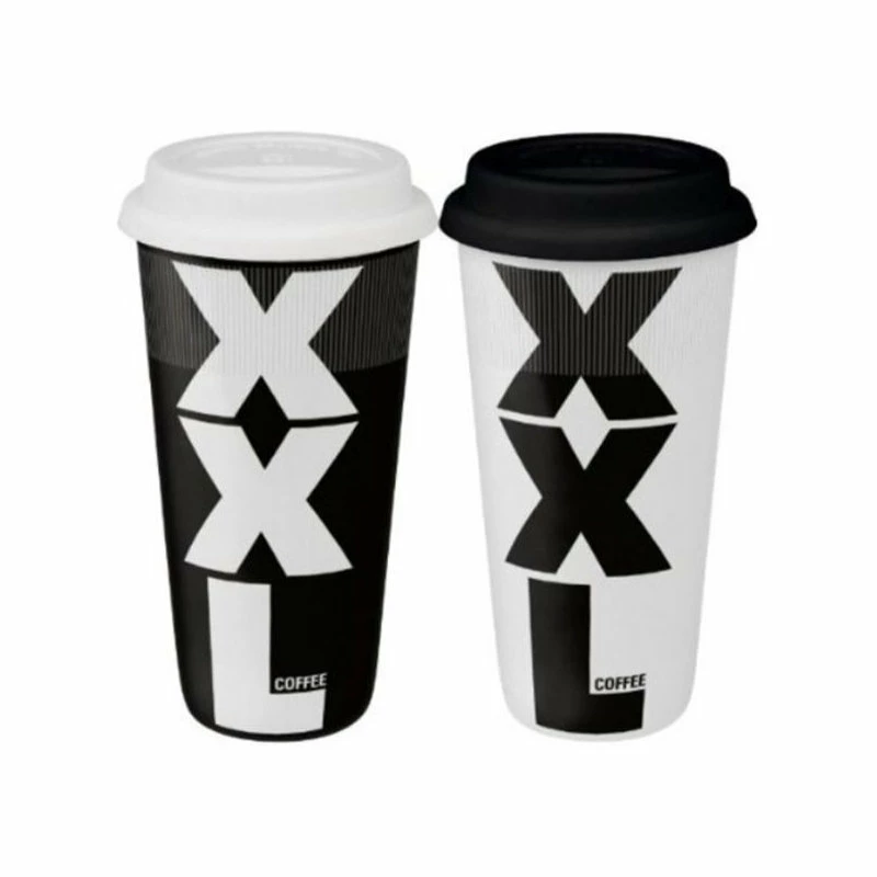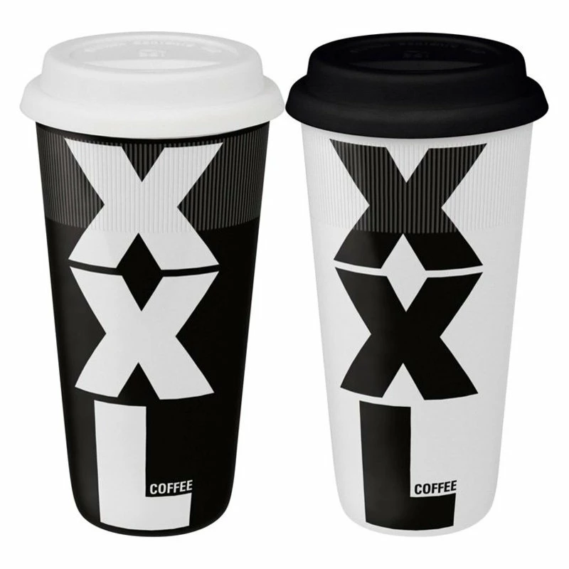 When just a little coffee won’t do, grab for your XXL Large Travel Mugs. The high capacity and stark black-and-white design of this oversized travel mug is great for the person who REALLY loves coffee. Tight-fitting lid prevents accidental spills and messes. German decals ensure lasting beauty. Microwave and dishwasher safe. 17.6 oz.