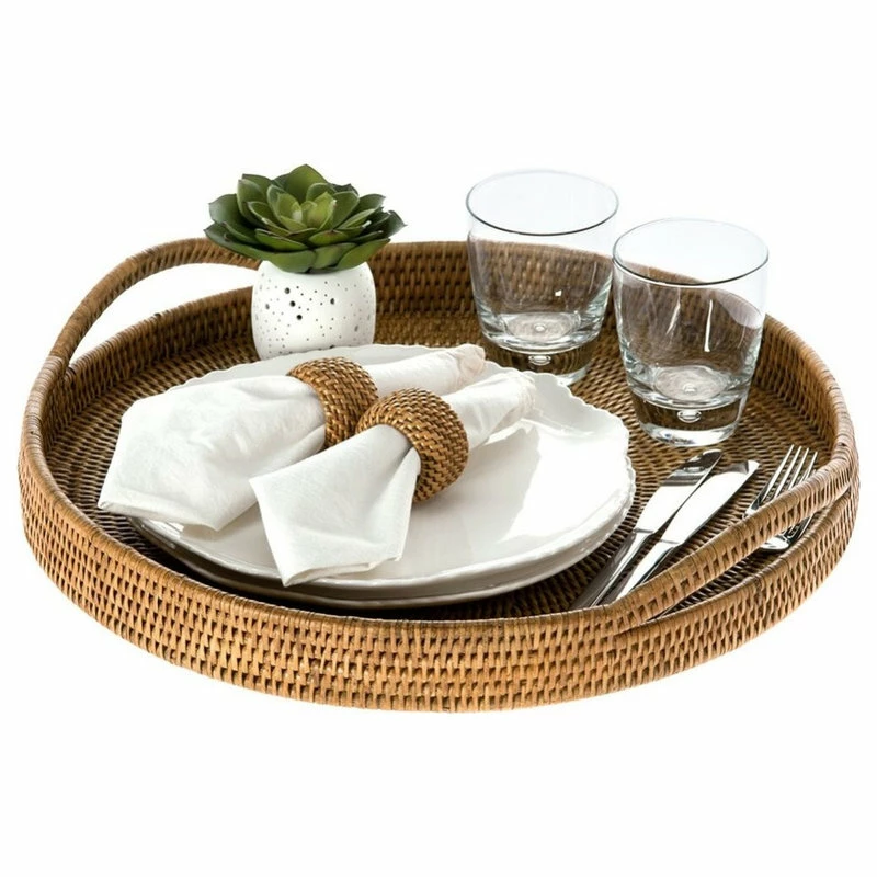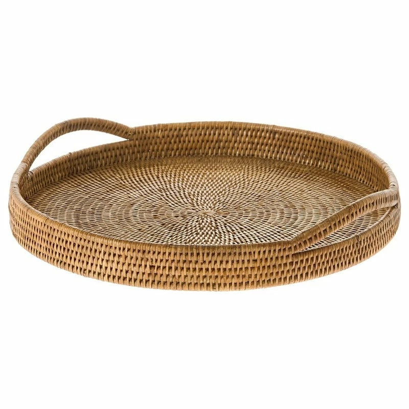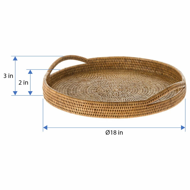 This round rattan serving tray was hand woven by master weavers to provide years of durability and sustainability. The tray’s warm, honey-brown color complements whatever it carries on board and offers easy, light transport to potlucks, picnics and pool parties. It’s simple, lightweight elegance at its best.