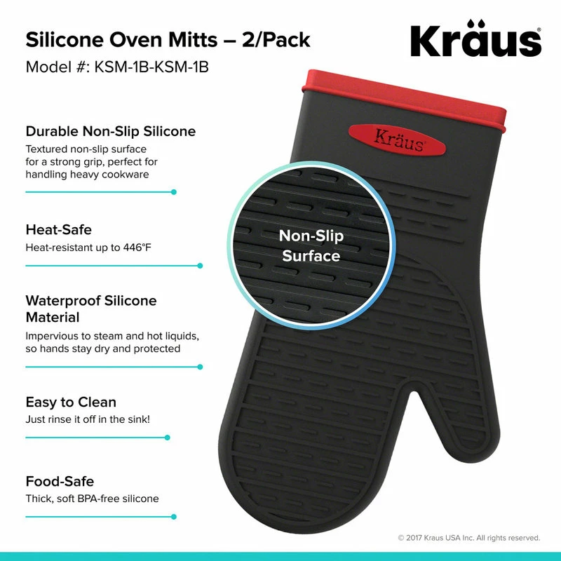 - Durable Silicone Oven Mitts with textured non-slip surface for a strong grip
