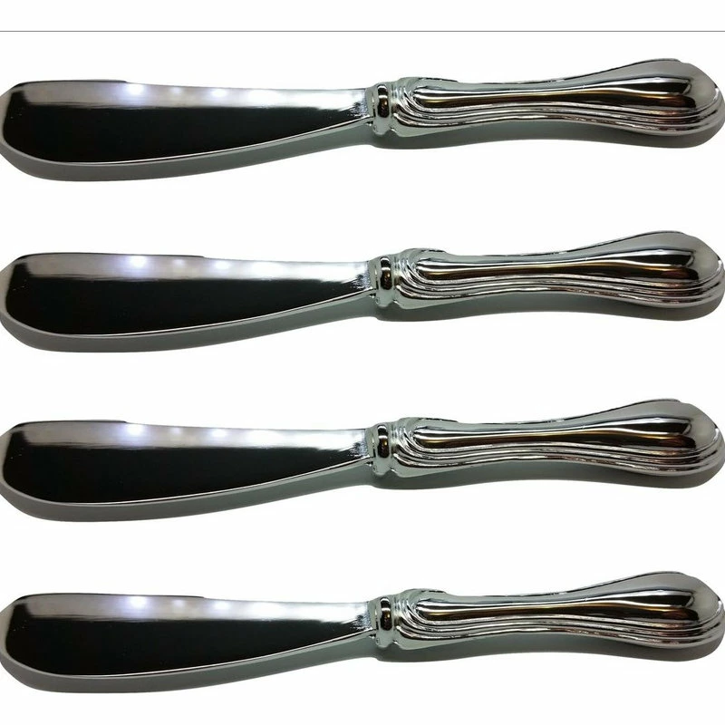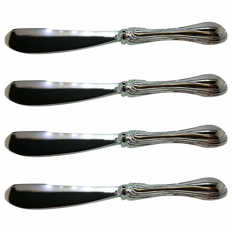 Elegance Silver-Plated Pate Knifes set with Rim Design adds the utmost in elegance to every occasion. With their luxurious handles, the Pate Knifes are at home in any parties and events.