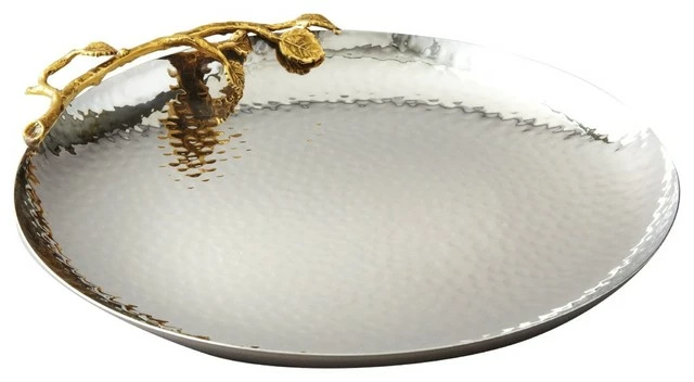 This elegant stainless steel serving tray is accented by a whimsical Golden Vine. Perfect for serving food or just use as a beautiful home decor piece.