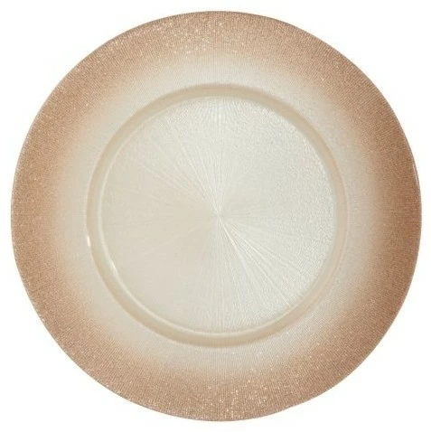 For over 30 years, Elegance by Leeber has been known for elegant design at accessible prices. From Home to Hotel and everywhere in between, Elegance has made high end products that are used in fine Hotels but affordable for the Home as well. With this elegant design this Elegance Rose Gold Charger Plate is a full 13 inches with an attractive glitter accented perimeter. These Chargers are a perfect accent plate for any formal party or event. Made of the finest Turkish Glass.