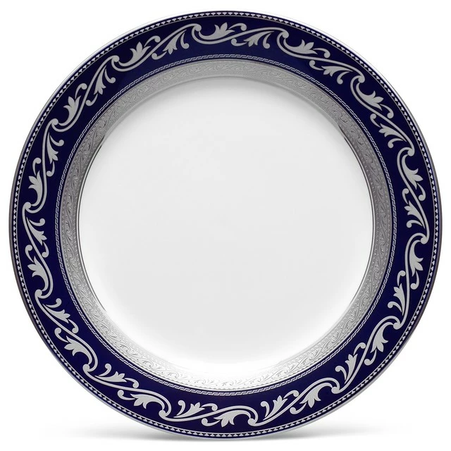 Noritake Crestwood Cobalt Platinum features a wide, etched platinum band coupled with an inner band of deep, cobalt blue, for a look of elegant simplicity. Crafted of white porcelain with a platinum trim.