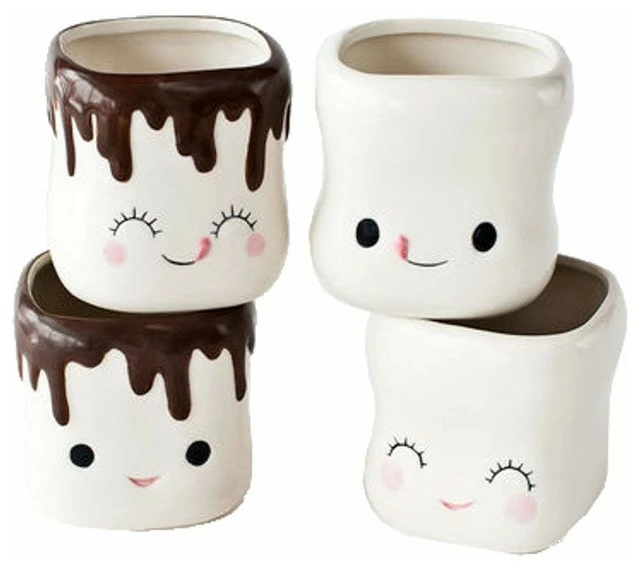 A cup of hot chocolate will taste even sweeter in an adorable marshmallow mug! The perfect way to cozy-up on a cold winter night, each of these 4 ceramic mugs features a different funny face and a puffy marshmallow body. The perfect size for little hands, these mugs measure 2.5″ high x 2.5″ in diameter and are microwave and dishwasher safe. Each mug comes with its own hot cocoa recipe card for giving as gifts. Please note measurements, these mugs are smaller than the average mug.
