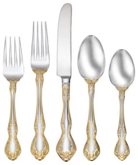 - 18/10 Stainless Steel, Handwashing is Recommended because of the gold trim