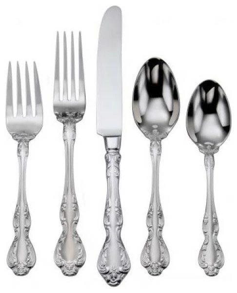 - (12) Place Forks, (12) Place Knifes, (12) Place Spoons, (12) Salad Forks, (12) Teaspoons, 5Pc Serving Set