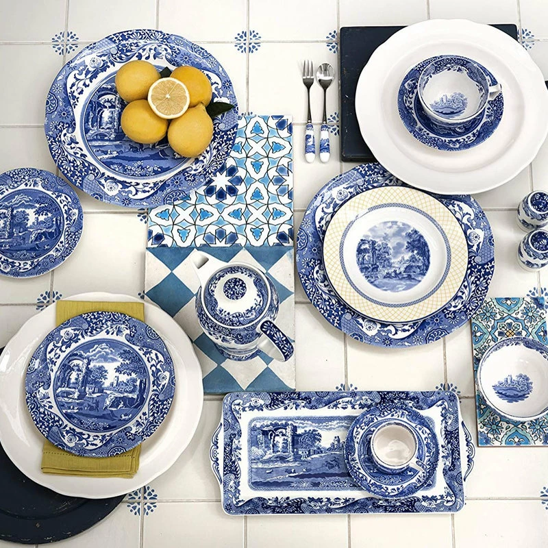- The central scene decorating these dishes are based upon a late 17th Century drawing depicting Italian ruins in a pastoral landscape, while an 18th Century Chinese-inspired pattern adorns the outer edges