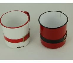 Budget ๐ Zeckos Red And White Enamel Metal Santa Suit Display Mugs Set Of 2 ๐ฅ