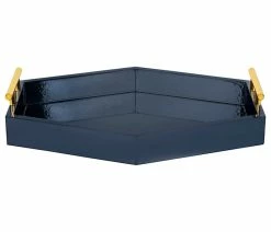 Best Sale ✨ Uniek Lipton Hexagon Tray With Metal Handles, Navy Blue 12×16.5 🤩