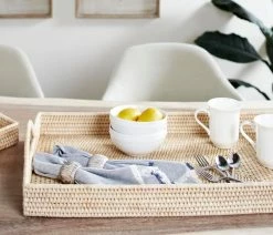 Outlet 👏 Zimlay Set Of 2 Cream Wood Boho Style Tray 35965 💯