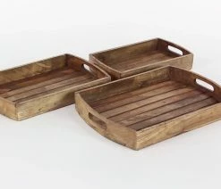Discount 👏 Brimfield & May Set Of 3 Light Brown Mango Wood Rustic Tray 30958 ⭐