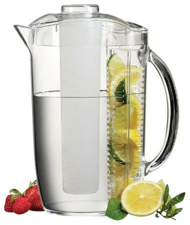 Enjoy refreshing beverages and keep them chilled with this attractive combo pitcher! Just place cut lemons, limes, berries or mint into the removable fruit infusion rod and slide it down the pitcher. Open slots in the rod allow liquids and fruit to mix naturally to give your drink a wonderful fruit infused flavour. The pitcher can be continually refilled without having to replace the fruit.