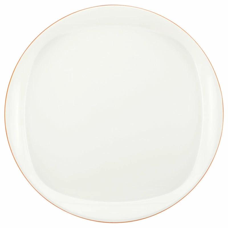 The Rachael Ray Round & Square collection was designed for entertaining and adds a touch of fun to everyday meals. Mix and match any color in the collection for a unique combination of hues or collect a single color for a more uniform design. This bold-colored round platter adds personality to the kitchen and dining room and the unique shape with a flared rim makes it easy to grasp and transport. This platter is also microwave, dishwasher and freezer safe, as well as oven safe to 500F, making it a wonderful oven-to-table piece.Uniquely shaped, the Round & Square collection combines circular traditional design with a contemporary squared base and a flared edge so its easy to grip.